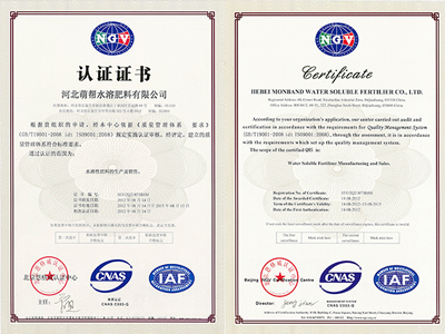 河北萌帮水溶肥料有限公司源于1995年所从事的农业植保技术服务,2009年成立,公司坐落于河北省赵县新寨店工业园区,占地41000平方米,集研发、生产、销售、服务于一体是全球专业的水溶肥料制造商和服务商。目前已经发展为一家拥有300多名员工、建有年产10万吨水溶性肥料生产线,并和其他厂家合资、合建、合作生产磷酸二氢钾3万吨、硝酸铵钙6万吨、工业磷酸一铵6万吨。   萌帮先后通过了ISO9001:2008国际质量管理体系认证;OHSAS18001:2007职业健康安全管理体系认证;ISO14001:2004环境管理体系认证;“萌帮”荣获了“河北省著名商标”称号。2013年,萌帮与国家科技部就“中量元素水溶肥料中试及产业化”项目进行了研发立项;萌帮的“卡丁”牌大量元素水溶肥料荣获河北省中小企业局“名牌产品”。2014年获得“高新技术企业”称号。 ...... [ 查看详情 ]
