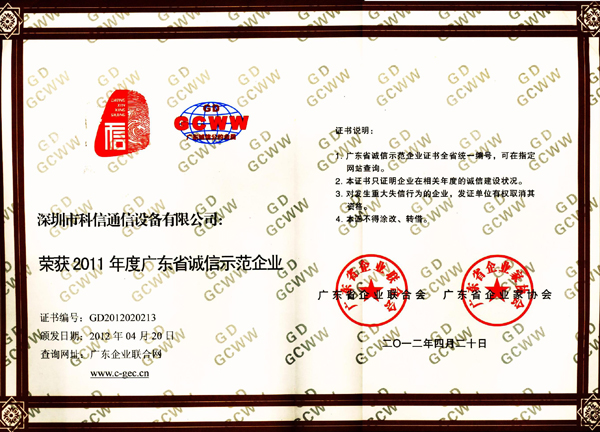2011年度广东省诚信示范企业
